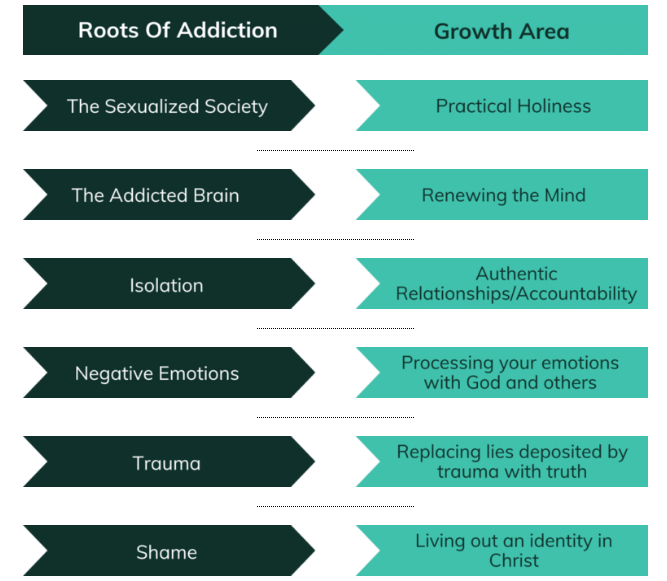 You will learn the six roots of a porn or sex addiction that the Freedom Fight program systematically works through and the area of growth required to overcome them: